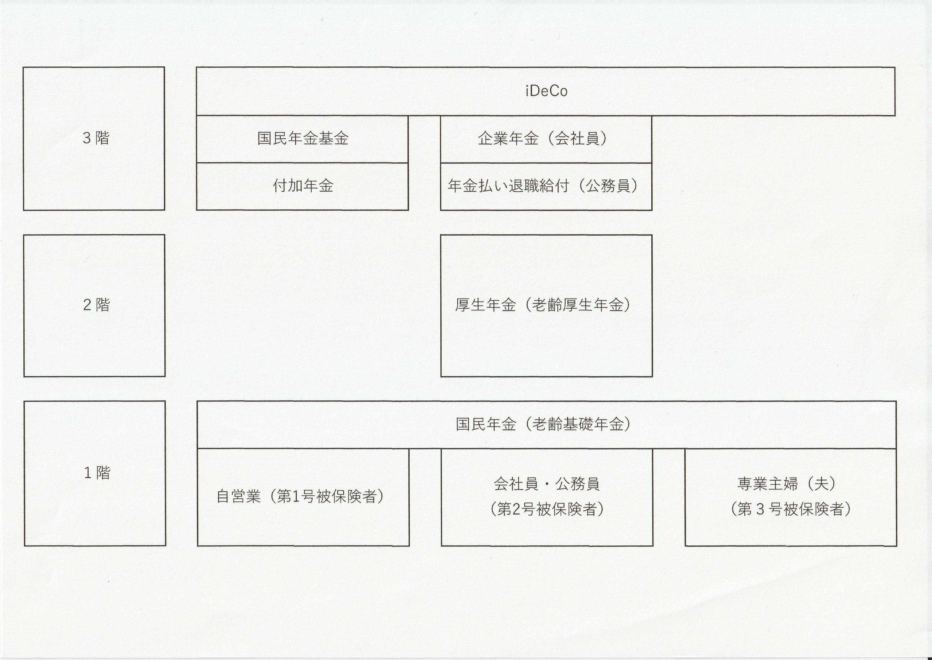 現在、公的年金制度は、3階建てである。